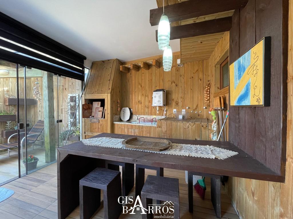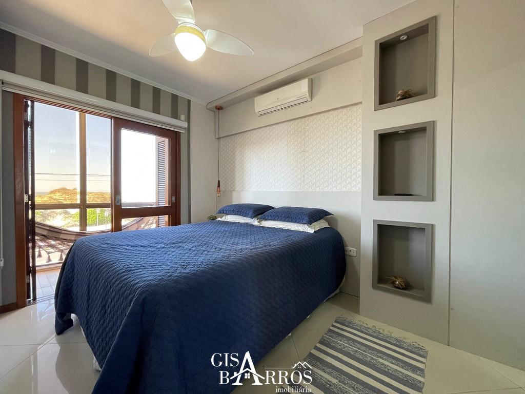 Composto por 03 dormitórios, sendo 01 suíte com vista para o mar, 01 banheiro social, 01 lavabo, sala de estar e jantar com lareira, área de serviço, espaço gourmet com churrasqueira, semimobiliado, climatizado, sistema de água quente, piso porcelanato, todo em laje de concreto, piscina e vaga para carro.